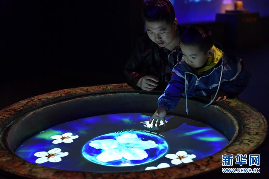 10月7日,参观者在山西青铜博物馆数字展厅参观体验。新华社记者 曹阳 摄