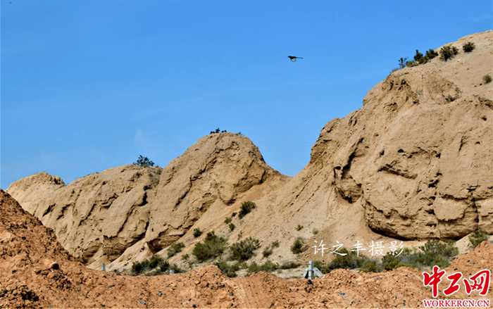 2019年10月8日,作者走进明长城银川段,始筑于明嘉靖十年,全长约10公里。境内自临河镇的横城堡黄河东岸,向东南延伸,经水洞沟、红山堡、清水营等地。长城墙体均为黄土夯筑而成,每隔150米至250米有一座凸出墙体的墩台。明代宁夏西长城、河东墙、长堤均从银川境内穿过,是历史文化名城银川宝贵的文化遗产。工人日报-中工网许之丰摄影报道