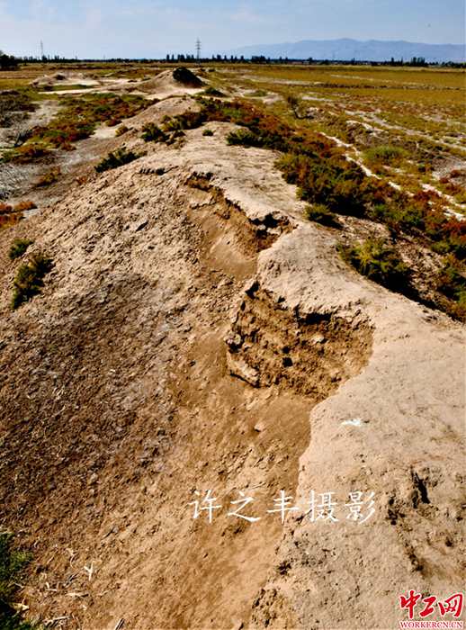 2019年10月7日,走进明长城角下的省嵬城遗址,它位于宁夏石嘴山市。始建于西夏时期,为守卫都城兴庆府(今宁夏银川)安全遗留下的古城遗址。现存城址略呈方形,城墙为黄土夯实,残城墙最高处尚有6米左右,基宽13米。宽阔的城区,平坦的地面,高大的城墙。一座气势宏大的古城遗址,历经上千年战争和风雨的洗礼尚有如此面貌,实属不易。工人日报-中工网许之丰摄影报道