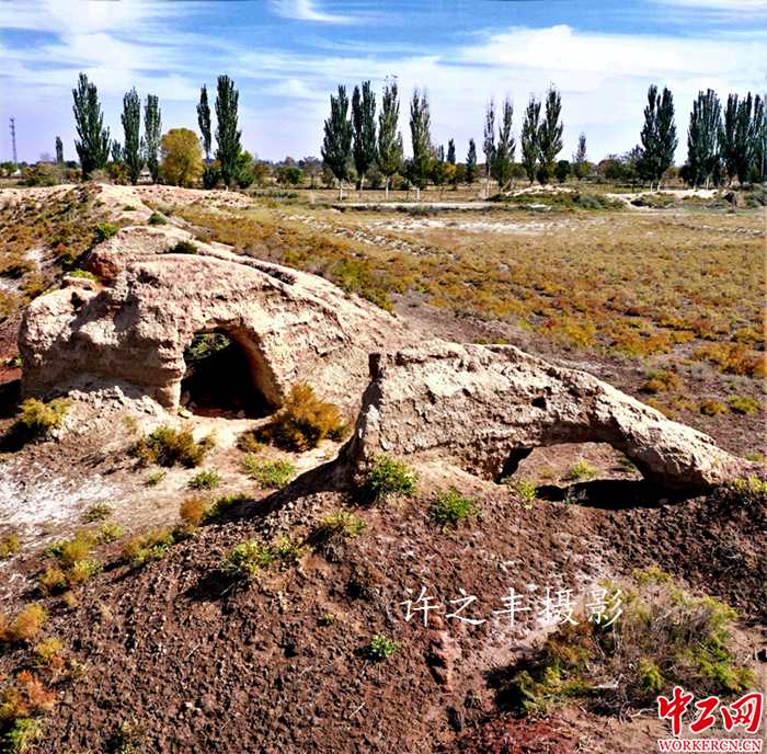 2019年10月7日,走进明长城角下的省嵬城遗址,它位于宁夏石嘴山市。始建于西夏时期,为守卫都城兴庆府(今宁夏银川)安全遗留下的古城遗址。现存城址略呈方形,城墙为黄土夯实,残城墙最高处尚有6米左右,基宽13米。宽阔的城区,平坦的地面,高大的城墙。一座气势宏大的古城遗址,历经上千年战争和风雨的洗礼尚有如此面貌,实属不易。工人日报-中工网许之丰摄影报道