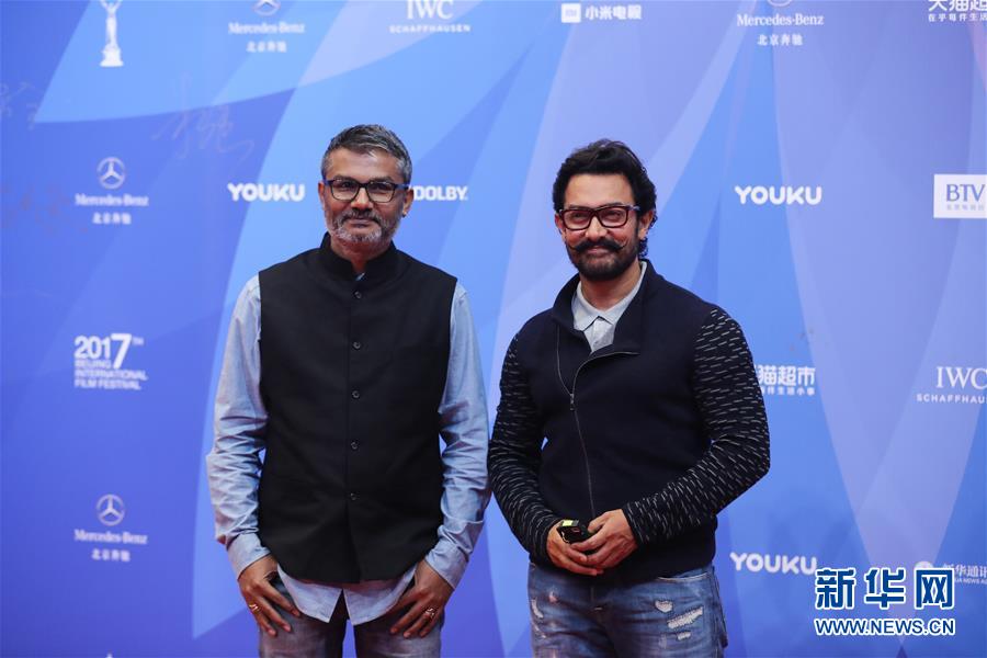 这是电影《摔跤吧!爸爸》剧组成员亮相第七届北京国际电影节开幕红毯(2017年4月16日摄)。 新华社记者 殷刚 摄