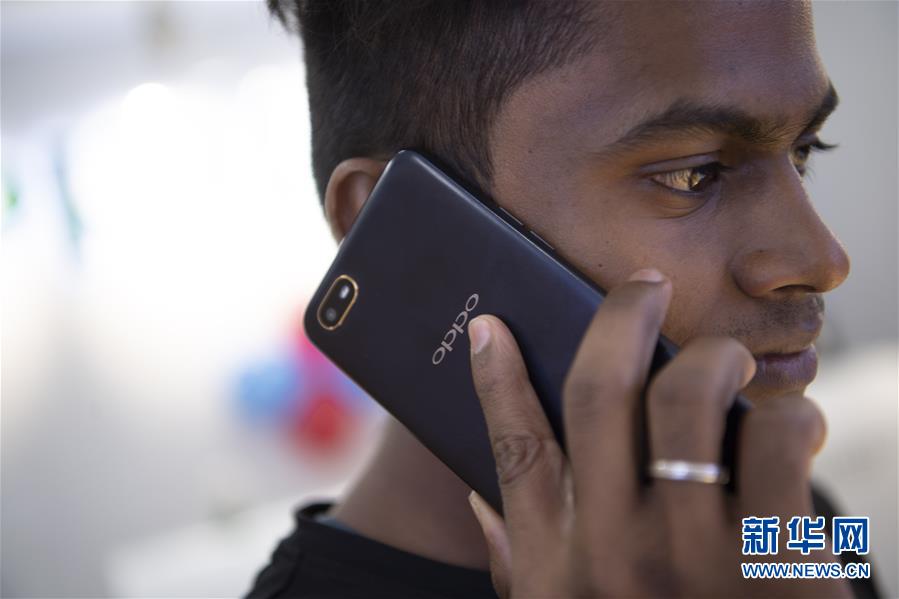 这是在印度金奈的一家商场,一名男子使用中国品牌OPPO的手机(2019年10月8日摄)。 新华社记者 吕小炜 摄