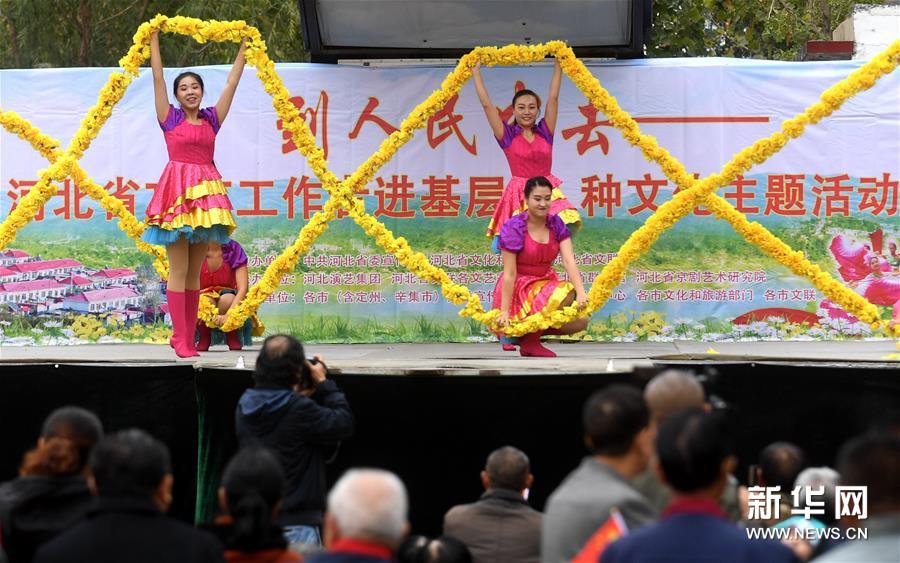 10月14日,文艺工作者在启动式上为群众表演节目。当日,“到人民中去”——河北省文艺工作者进基层、种文化主题活动启动式在石家庄市正定县塔元庄村文化广场举行,文艺工作者为当地群众送去多种形式的表演。新华社记者 王晓 摄