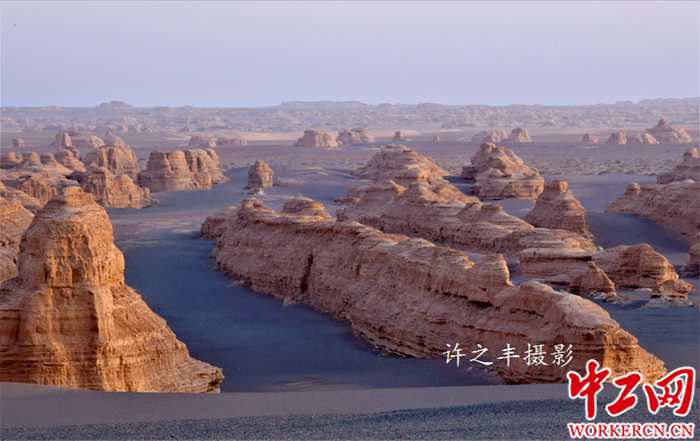 2019年10月1日,作者沿着汉长城西行,走进汉长城玉门关西北侧的雅丹地貌,大自然在这里创造出了许多奇观异景。这里的雅丹地貌属于古罗布泊的一部分,位于新疆与甘肃交界处。典型的雅丹地貌群落,布局有序、造型奇特、是一座罕见的天然雕塑博物馆,堪称古丝绸之路上的一道奇特景观。工人日报-中工网许之丰摄影报道