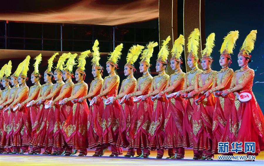 10月20日,中央民族歌舞团演员在文艺晚会上表演维吾尔族女子群舞《石榴红了》。 当日,“中华民族一家亲”庆祝云南省寻甸回族彝族自治县成立40周年大型文艺晚会在云南寻甸举行。 新华社记者杨宗友摄