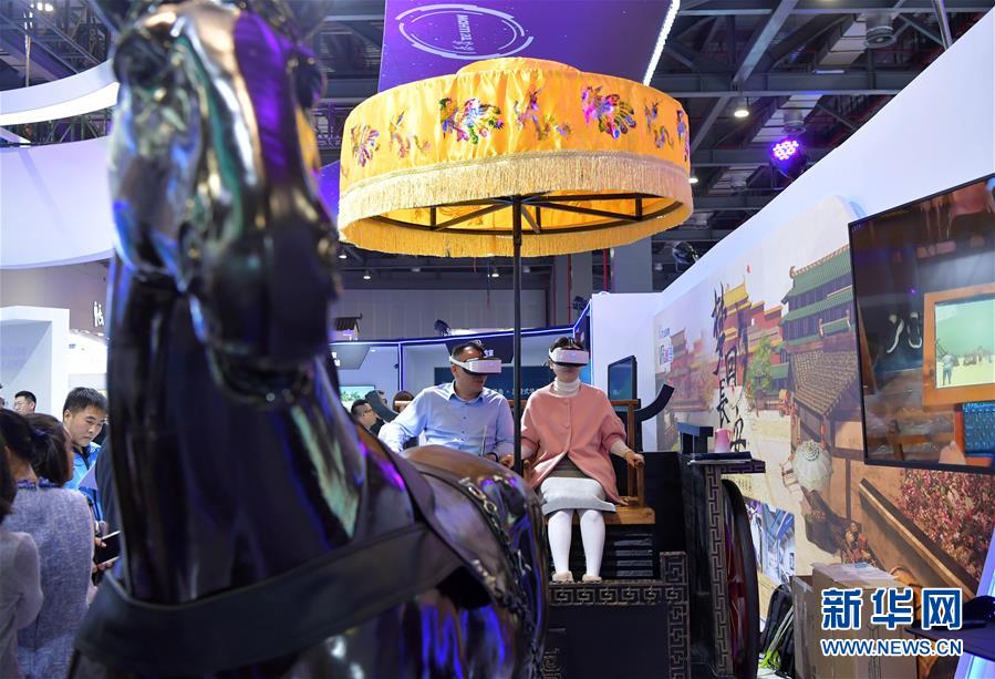 在2019世界VR产业大会VR/AR产品和应用展览会上,观展者在使用一款VR设备参观博物馆(10月19日摄)。 新华社记者 彭昭之 摄