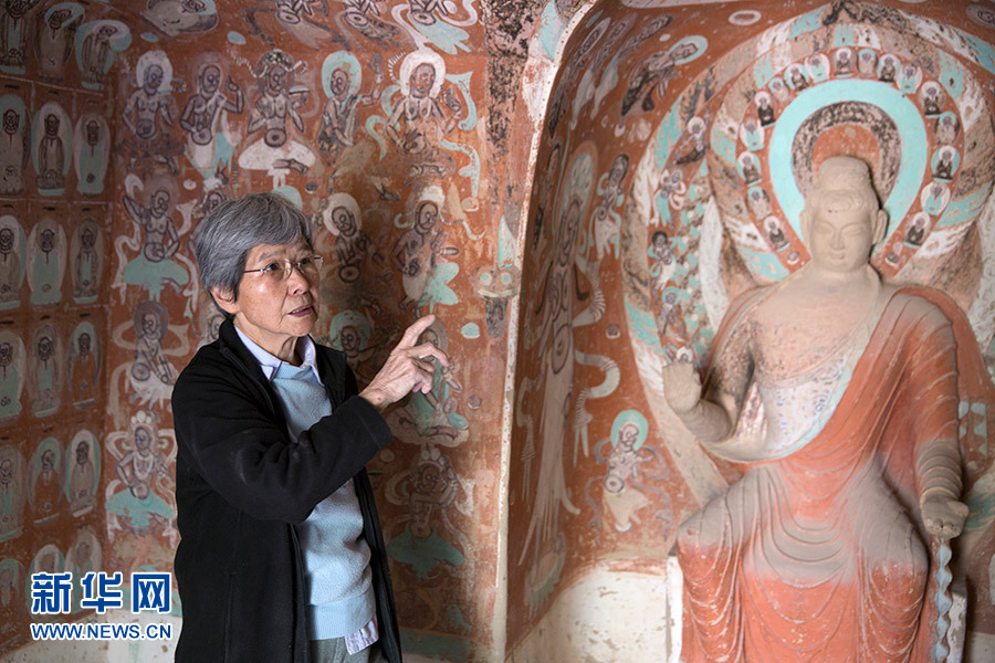 樊锦诗在敦煌莫高窟(2015年9月29日摄)。 新华社发(孙志军 摄)