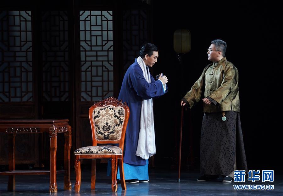 10月22日,演员在京剧《梅兰芳·蓄须记》中表演。 当晚,新编现代京剧《梅兰芳·蓄须记》在江苏南京上演。该剧生动呈现了梅兰芳先生真挚的爱国情怀和精湛的艺术修养。 新华社记者 季春鹏 摄