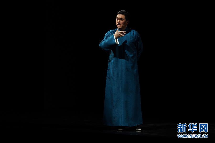 10月22日,演员在京剧《梅兰芳·蓄须记》中表演。 当晚,新编现代京剧《梅兰芳·蓄须记》在江苏南京上演。该剧生动呈现了梅兰芳先生真挚的爱国情怀和精湛的艺术修养。 新华社记者 季春鹏 摄