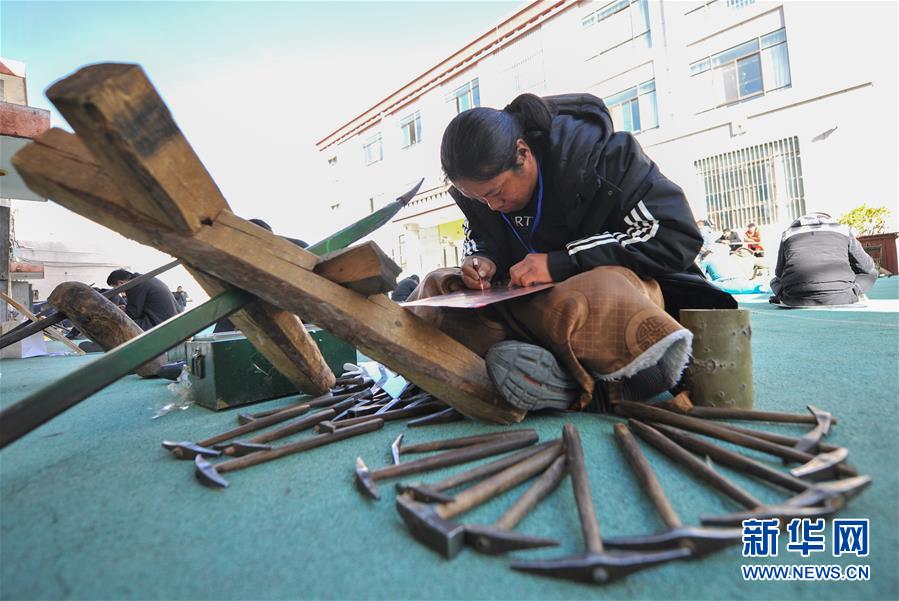 10月23日,在第二届西藏造像艺术博览会技艺大赛现场,造像师在铜板上绘制草图。 当日,第二届西藏造像艺术博览会技艺大赛在西藏自治区群艺馆开幕,来自西藏各地的造像师根据现场随机抽出的造像题目,现场进行造像技艺展示,其中的佼佼者将会获得西藏自治区文化厅颁发的西藏自治区一、二、三级造像师证书。西藏目前有两千多名造像从业者,主要分布在拉萨、日喀则和昌都等地。 新华社记者 晋美多吉 摄
