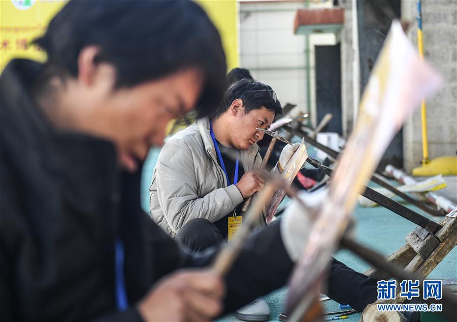 10月23日,在第二届西藏造像艺术博览会技艺大赛现场,造像师在打制西藏传统造像。 当日,第二届西藏造像艺术博览会技艺大赛在西藏自治区群艺馆开幕,来自西藏各地的造像师根据现场随机抽出的造像题目,现场进行造像技艺展示,其中的佼佼者将会获得西藏自治区文化厅颁发的西藏自治区一、二、三级造像师证书。西藏目前有两千多名造像从业者,主要分布在拉萨、日喀则和昌都等地。 新华社记者 晋美多吉 摄