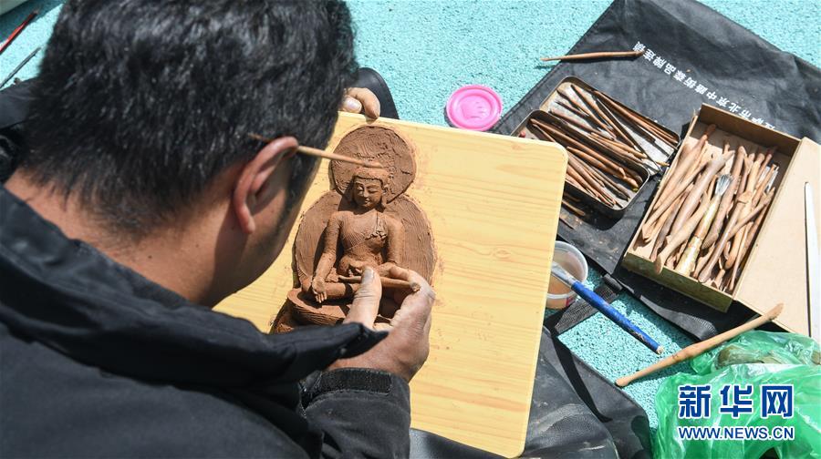 10月23日,在第二届西藏造像艺术博览会技艺大赛现场,造像师在泥塑西藏传统造像。 当日,第二届西藏造像艺术博览会技艺大赛在西藏自治区群艺馆开幕,来自西藏各地的造像师根据现场随机抽出的造像题目,现场进行造像技艺展示,其中的佼佼者将会获得西藏自治区文化厅颁发的西藏自治区一、二、三级造像师证书。西藏目前有两千多名造像从业者,主要分布在拉萨、日喀则和昌都等地。 新华社记者 晋美多吉 摄