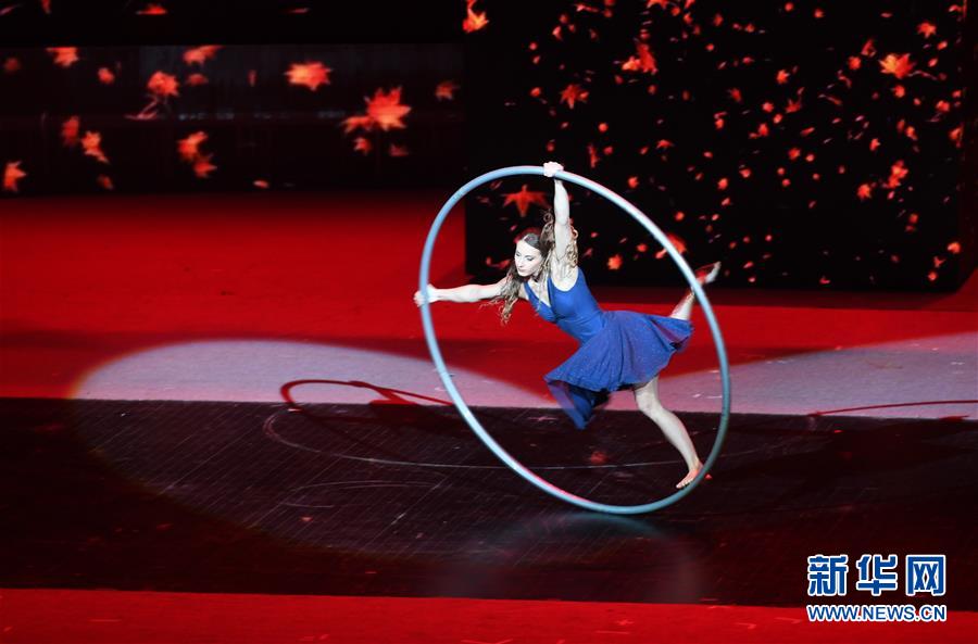 10月25日,演员在开幕演出上表演。当日,第十七届中国吴桥国际杂技艺术节在河北省艺术中心开幕。新华社记者 朱旭东 摄