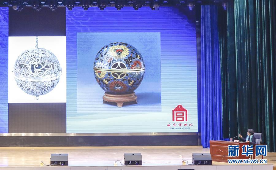 10月27日,故宫博物院研究员、图书馆馆长张荣在2019景泰蓝文化论坛上做讲座。 当日,2019中国·大厂景泰蓝设计创新大赛在河北省大厂回族自治县举行2019景泰蓝文化论坛。 新华社记者 李晓果 摄