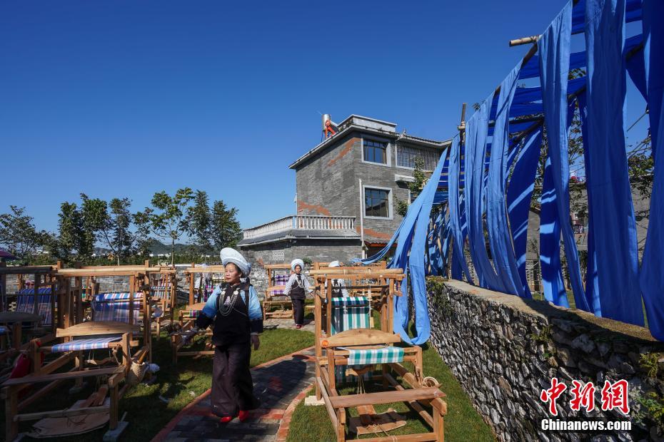 10月29日,布依族绣娘在“锦绣家园”主题非遗展示区内进行布置。当日,贵州省黔西南布依族苗族自治州在兴义市万峰林举办“锦绣家园”主题非遗展示,布依纺纱、纺布技艺和布依手工艺品等亮相,吸引游客参观、了解当地布依族的多项非遗技艺。中新社记者 贺俊怡 摄