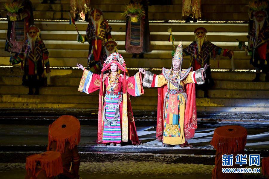 演员在演绎松赞干布迎娶文成公主(10月31日摄)。 新华社记者李鑫摄