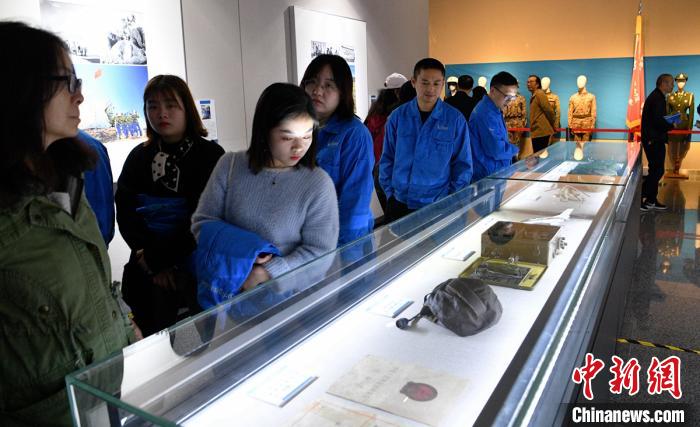 60余件飞行装具、荣誉证章等各种不同类型的实物吸引参观者。 刘忠俊 摄