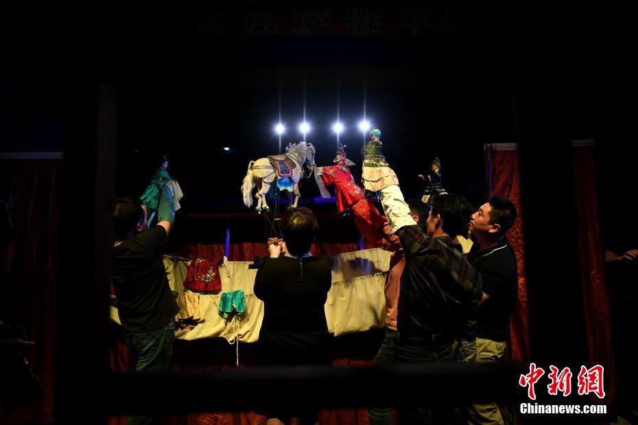 11月12日,漳州市木偶剧团上演国家级非物质文化遗产——漳州布袋木偶戏,表演栩栩如生。漳州布袋木偶戏是由木偶表演剧、布袋木偶戏、木偶头雕刻等组合而成的一种综合性的传统民俗艺术,擅长演武打、短打戏,动作轻快灵活,音乐性强,富有节奏感。中新社记者 王东明 摄