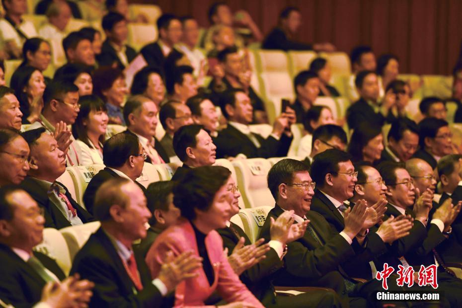11月12日晚,“大美湾区 踏歌前行”——首届华侨华人粤港澳大湾区大会文艺晚会在广州举行。图为嘉宾观看文艺演出。中新社记者 姬东 摄