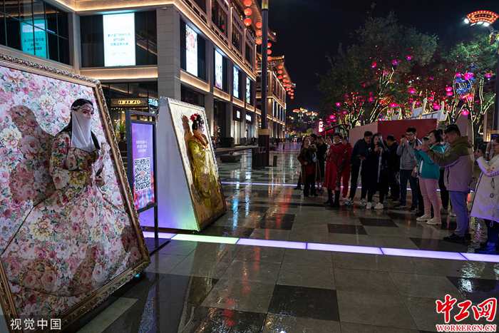 西安:“贵妃画中人”亮相大唐不夜城 吸引游客拍照留念