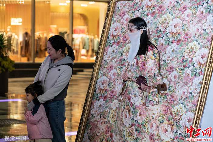 西安:“贵妃画中人”亮相大唐不夜城 吸引游客拍照留念