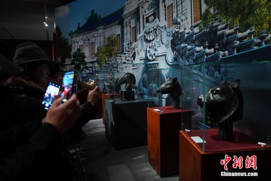 11月13日,圆明园马首铜像捐赠仪式在位于北京的中国国家博物馆举行。2019年11月,何鸿燊先生决定将马首铜像正式捐赠中国国家文物局,向中华人民共和国成立70周年和澳门回归20周年献礼。马首今后将回归原属地,由北京市圆明园管理处收藏。捐赠仪式后,马首铜像(右三)与其他六尊兽首铜像聚首京城,在国博《回归之路—新中国成立70周年流失文物回归成果展》上共同向观众展出。中新社记者 张兴龙 摄