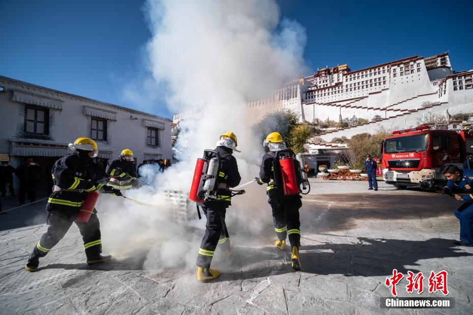 11月13日,布达拉宫管理处与拉萨市布达拉宫消防救援大队通过消防趣味运动会,为布达拉宫管理人员普及防火、灭火等消防知识,铸守护世界文化遗产的“防火墙”。布达拉宫是一座规模浩大的宫殿式建筑群,房屋多达万间,建筑面积达13万多平方米。1994年,布达拉宫被列为世界文化遗产。中新社记者 何蓬磊 摄