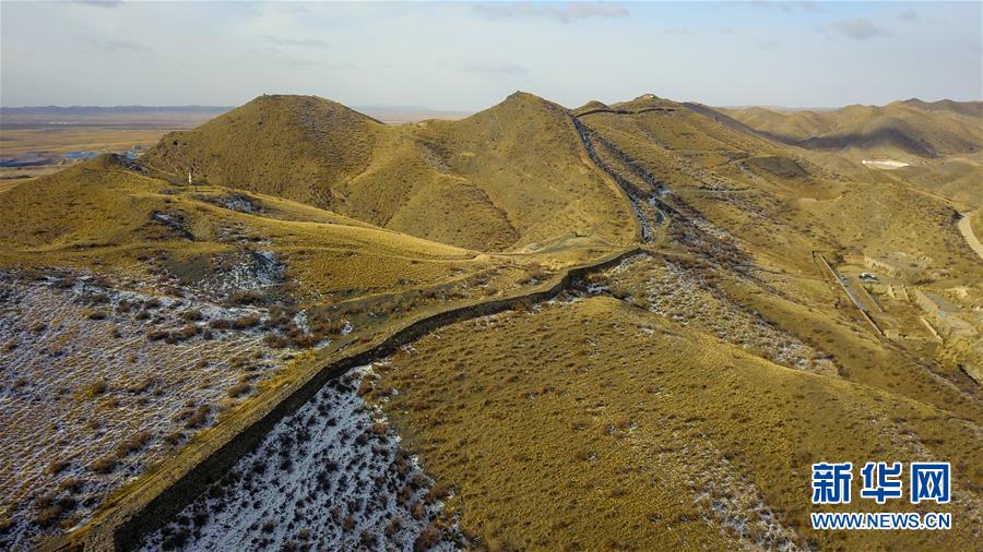 俯瞰固阳秦长城(11月13日无人机拍摄)。
