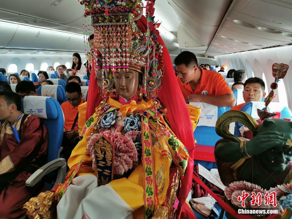11月14日,厦门航空MF853航班顺利抵达泰国曼谷。来自“妈祖故乡”福建莆田湄洲岛的妈祖金身起驾搭机巡访“佛教国度”泰国,展开为期五天六夜的“妈祖下南洋·重走海丝路”暨中泰妈祖文化活动周之旅。中新社发 高亚成 摄