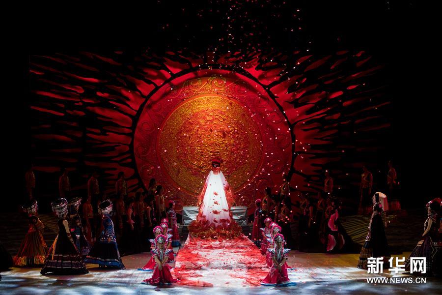 演员在音乐舞剧《云绣彝裳》第五章节“丝路云裳”中表演(11月15日摄)。 新华社记者胡超摄