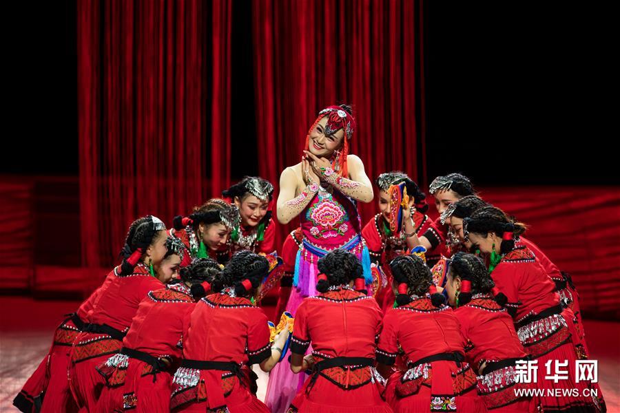 演员在音乐舞剧《云绣彝裳》第四章节“红妆似火”中表演(11月15日摄)。 新华社记者胡超摄
