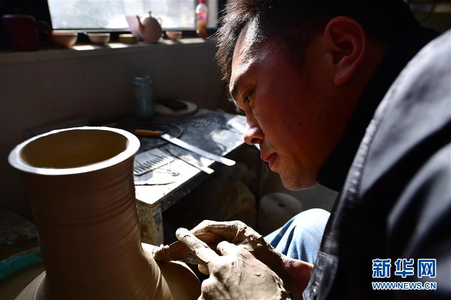 11月19日,工人在一家汝窑瓷器制作公司生产车间工作。 汝窑为我国宋代五大名窑之一,其产地汝州素有“百里煤海”之称,此地盛产高岭土、玛瑙、黏土等制瓷原料,为汝瓷烧制技艺的发展提供了特有的自然条件。近年来,河南省汝州市不断扶持汝瓷产业发展,一批汝瓷企业发展壮大,汝瓷成为汝州的一张亮丽名片。 新华社记者 冯大鹏 摄