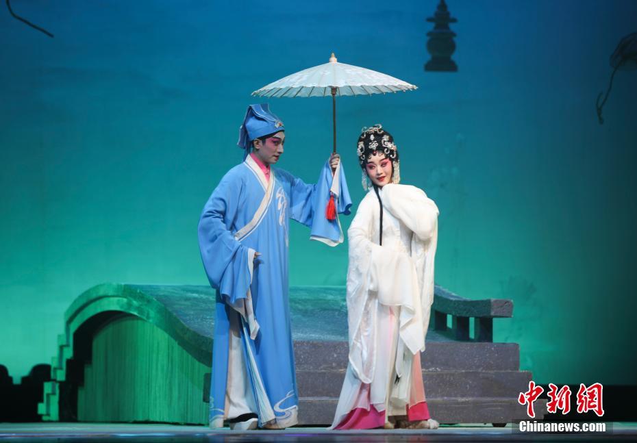 11月19日晚,新编传奇粤剧《白蛇传·情》在北京梅兰芳大剧院上演。该剧取材于经典传奇,选取“情”为切入点,提炼升华“情”的实质与“爱”的内涵,运用粤剧综合表演艺术,结合现代理念舞台样式,演绎具有内在人文情怀与现代审美品格追求的粤剧版《白蛇传·情》。中新社记者 赵隽 摄