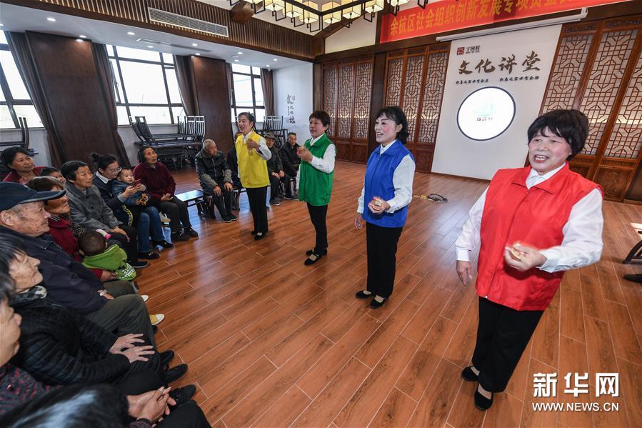 11月20日,故事员们在塘栖镇丁河村文化礼堂内,用快板的形式给村民们普及垃圾分类知识。从2019年开始,浙江省杭州市余杭区塘栖镇结合区级文化礼堂创建文化下基层、文化进校园等活动,组建多支志愿者团队开展塘栖镇故事沙龙。故事员们走村入户,用群众喜闻乐见的“故事会”形式宣传政策、传播知识、弘扬文明新风,推动农村思想政治工作,丰富群众精神文化生活,起到了很好的道德引领作用。截至11月初,塘栖镇故事沙龙共计开展故事下基层(农村、社区、企业、学校)、故事进文化礼堂等活动50多场,在群众中起到了很好的反响作用。 新华社记者 徐昱 摄