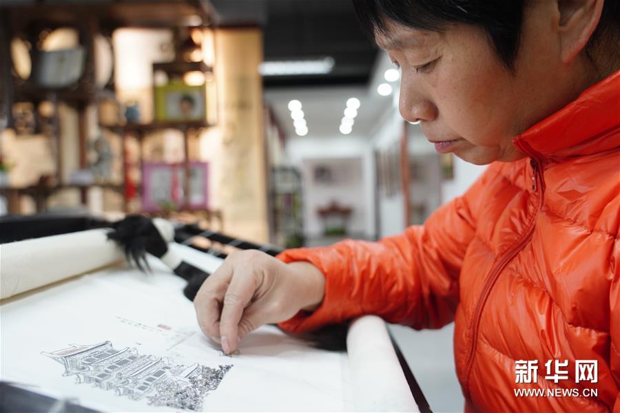 11月21日,陶永红在创作赣发绣作品。赣发绣,是以发丝为线在布织物上进行刺绣的一种具有赣鄱地域特色的民间手工刺绣艺术。据悉,赣发绣传承至今已有近500年历史,被列为江西省非物质文化遗产。 为了更好地传承和发展这一传统手艺,赣发绣的第十七代传人陶永红在南昌市东湖区政府的支持下创办了集生产、保护等功能为一体的南昌永红赣发绣发展有限公司,还创办职业培训学校,与社区、院校、村委会等合作,先后免费培训下岗失业人员、农民工等3000余人,让这门古老的传统艺术得以传承和发扬。新华社记者周密摄