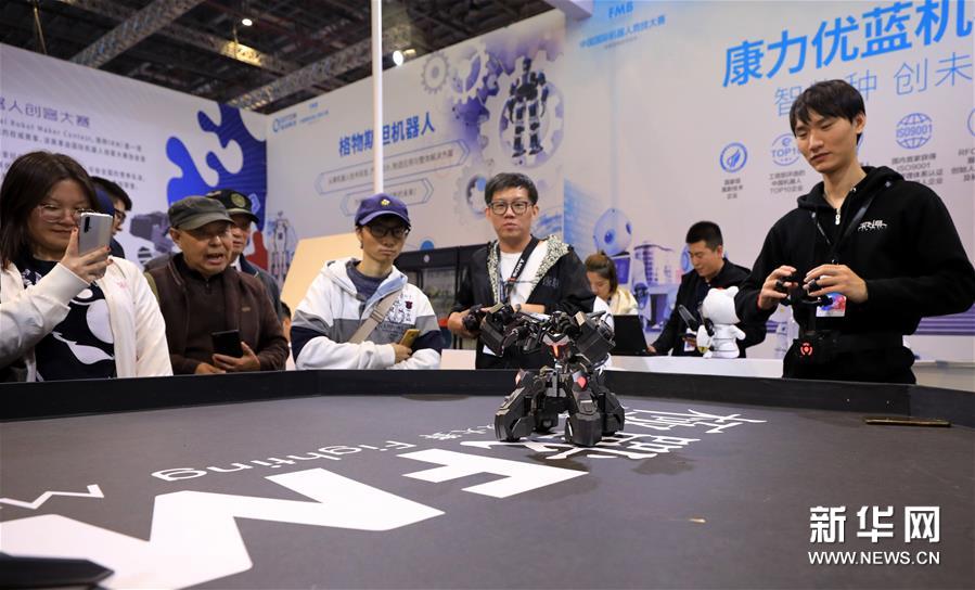 11月21日,观众在博览会上观看一个通过手势操控的机器人。新华社记者 方喆 摄