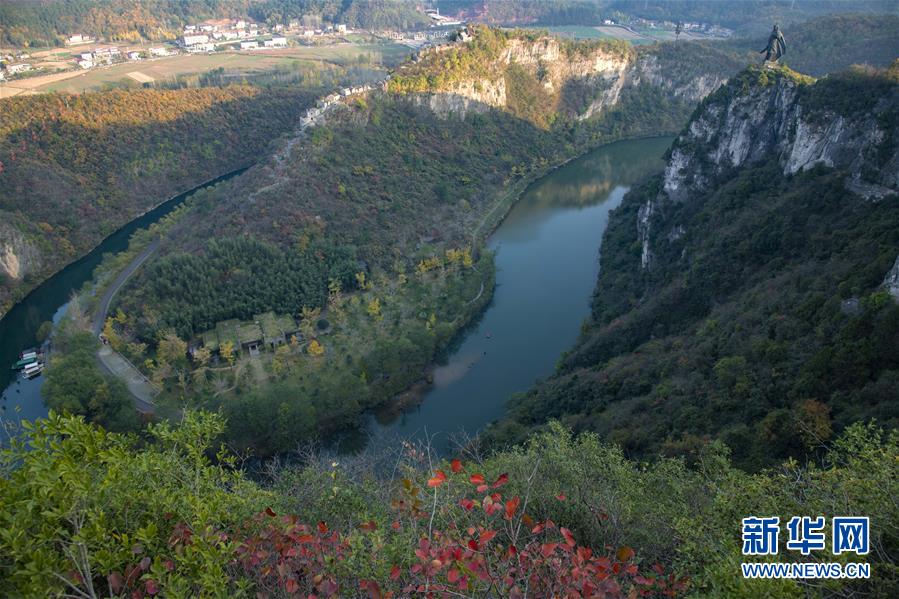 位于湖北省南漳县东巩镇境内的古山寨——春秋寨及周边风光(11月21日无人机拍摄)。新华社记者 杜华举 摄