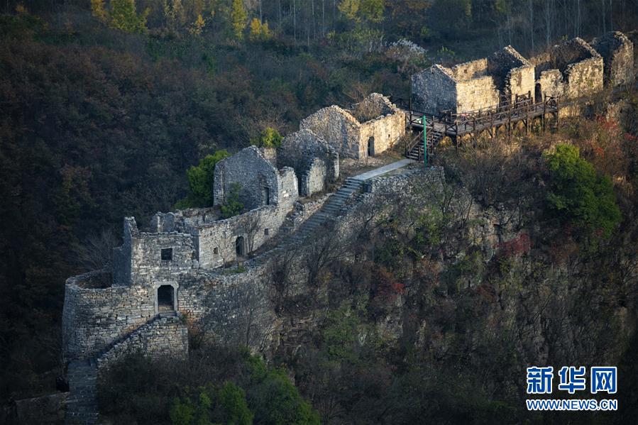 位于湖北省南漳县东巩镇境内的古山寨——春秋寨(11月21日无人机拍摄)。新华社记者 杜华举 摄