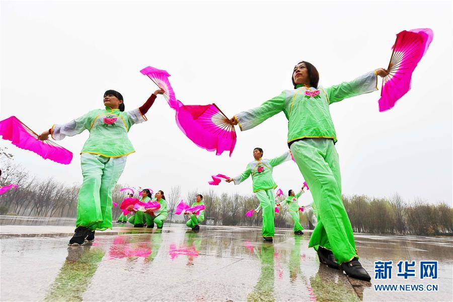 11月23日,在邹平市韩店镇禾和嘉苑社区文明实践站点,社区群众在表演扇子舞。 近年来,山东省邹平市积极建设和打造社区文明实践分中心和实践站点,定期开展公益课堂、乡村戏台、文明大讲堂等丰富多彩的社区群众文化活动,不断提高群众文明意识,增强文明素养。 新华社记者范长国摄
