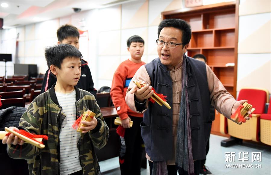 11月23日,在邹平市新时代文明实践中心培训室,教师在教授学生学习山东快板。新华社记者范长国摄
