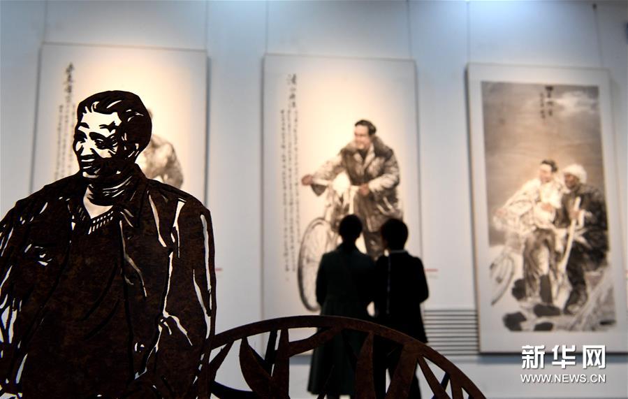 11月27日,观众在河南省美术馆观赏作品。新华社发(郝源 摄)
