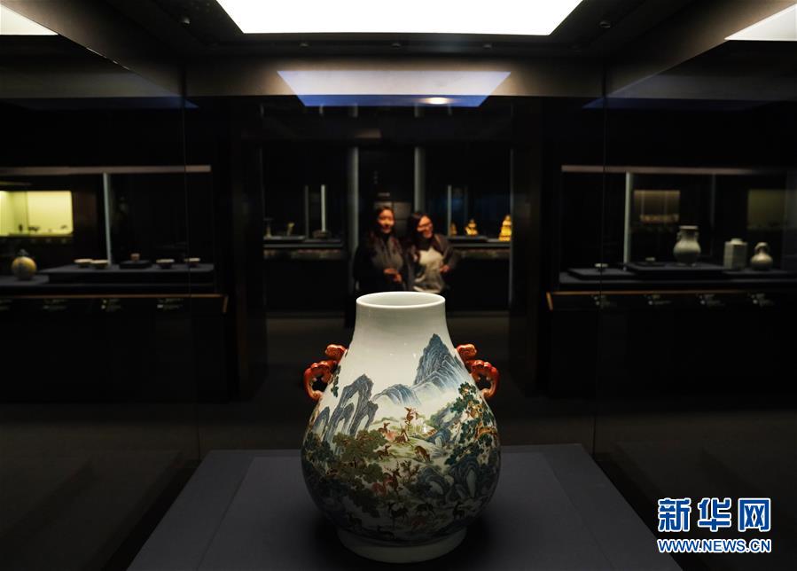 在香港艺术馆展出的粉彩百禄图大瓶(11月29日拍摄)。新华社记者 李钢 摄