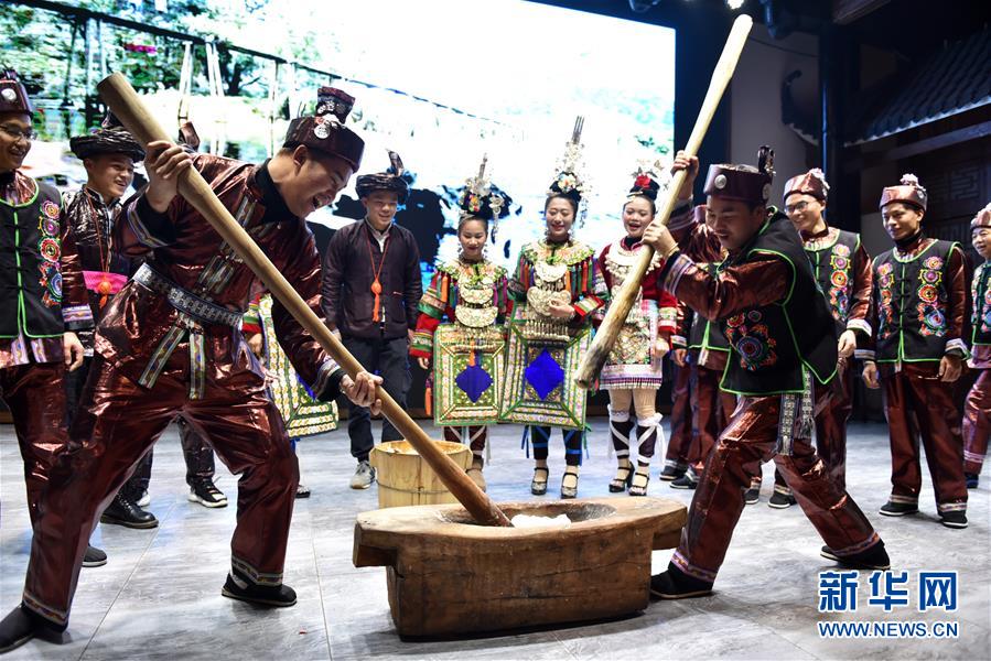11月30日,侗族同胞在贵阳侗年活动中打糍粑。新华社记者 杨文斌 摄