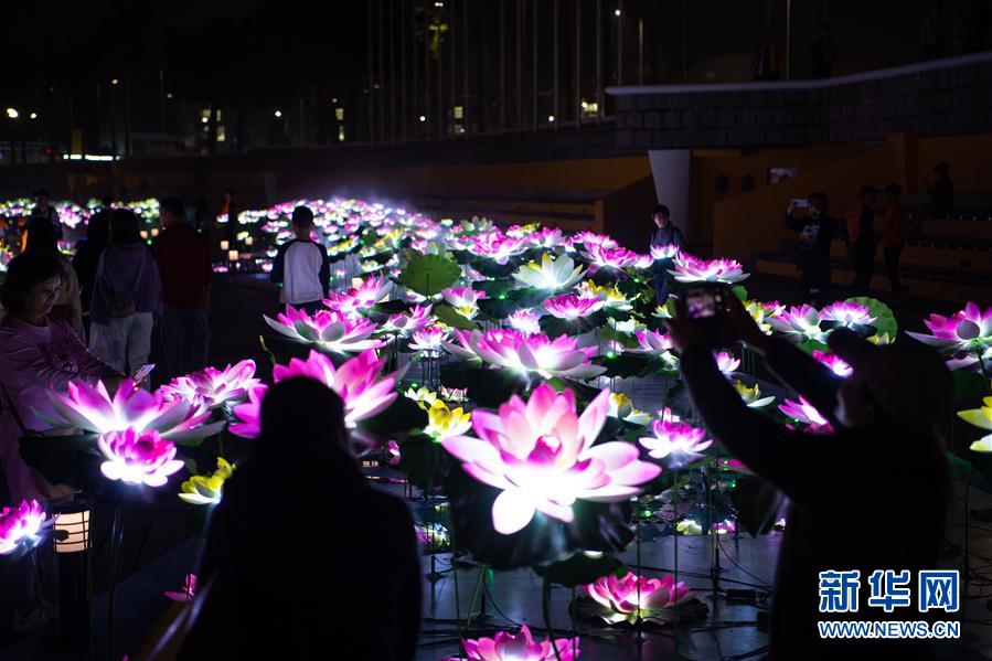 12月1日,市民在南湾湖畔的光影节上游览。 当晚,一年一度的“2019澳门光影节”在南湾湖畔开幕,活动内容包括光雕表演、灯饰装置和互动游戏等,让市民和游客感受澳门即将迎来回归祖国20周年的喜庆氛围。 新华社记者 张金加 摄