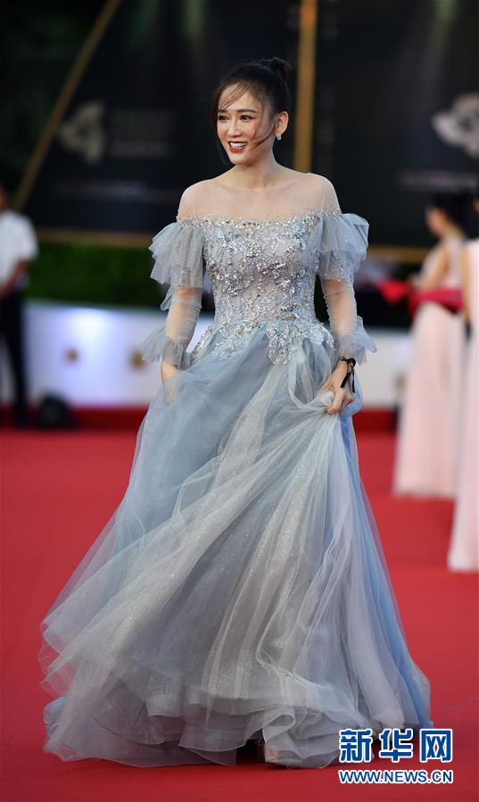 12月1日,演员陈乔恩亮相电影节红毯仪式。 当日,第二届海南岛国际电影节在三亚开幕。 新华社记者 郭程 摄