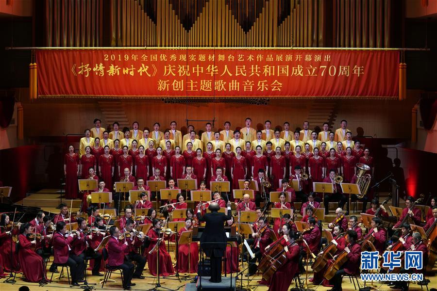 12月2日,中国交响乐团合唱团合唱歌曲《奋进的道路》。 当日,《抒情新时代》庆祝中华人民共和国成立70周年新创主题歌曲音乐会在北京音乐厅上演,艺术家们演唱了18首新创歌曲。为了更好地完成这批主题歌曲的创作任务,来自全国各地的近百名艺术家从西柏坡出发,到延安、古田、湘江、瑞金、井冈山等地采风,并将这些体验写进了音乐旋律之中。 新华社记者 金良快 摄