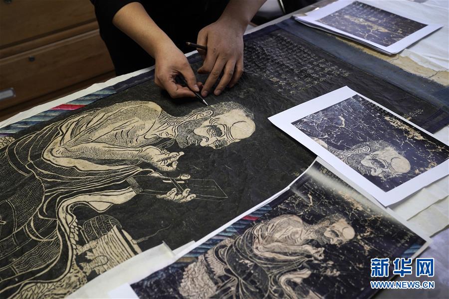 12月3日,一名修复师在修复西藏博物馆藏罗汉拓片。 中国国家博物馆文保院于2018年在原文物科技保护部与艺术品鉴定中心科技检测室的基础上组建,拥有40名文物修复师,下设环境监测研究所、藏品检测与分析研究所、器物修复研究所、金属器物修复研究所、书画文献修复研究所、油画修复研究所。文保院积极贯彻“保护为主、抢救第一、合理利用、加强管理”的文物保护方针,主要负责文物的保护、修复和复制工作,延续文物的历史价值、文化价值和科学价值。 新华社记者金良快摄