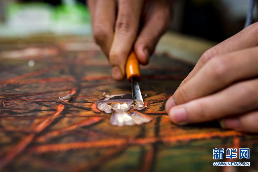 12月5日,在普洱学院版画工作室,一名艺术学院学生在制作绝版木刻版画。 绝版木刻是在传统套色木刻基础上发展起来的一种凸版技法,由于刻印完最后一版后不能留下再印,亦被称为绝版套色木刻。上世纪80年代,绝版木刻发源于云南普洱,历经30余年发展,现已成为中国四大版画流派之一。 新华社记者 胡超 摄
