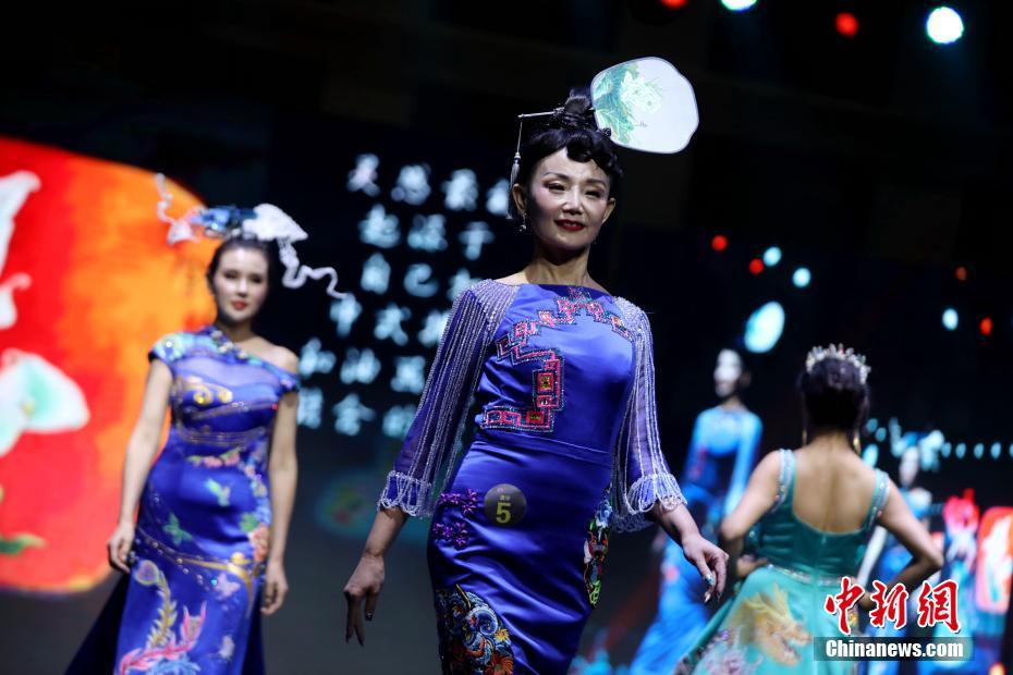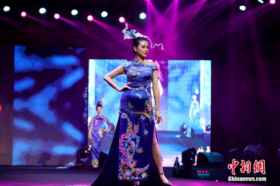 12月8日晚,为期三天的2019第三届海峡两岸旗袍文化节暨全球华服风尚盛典,在厦门落下帷幕。约500名旗袍爱好者、时尚大咖现场交流,上演典雅旗袍年代秀。图为旗袍设计大赛参赛选手作品展示。中新社记者 李思源 摄