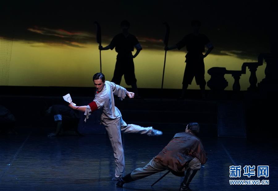 12月9日,演员马晓东(前左)在《红色娘子军》中饰演洪常青。新华社记者 金良快 摄